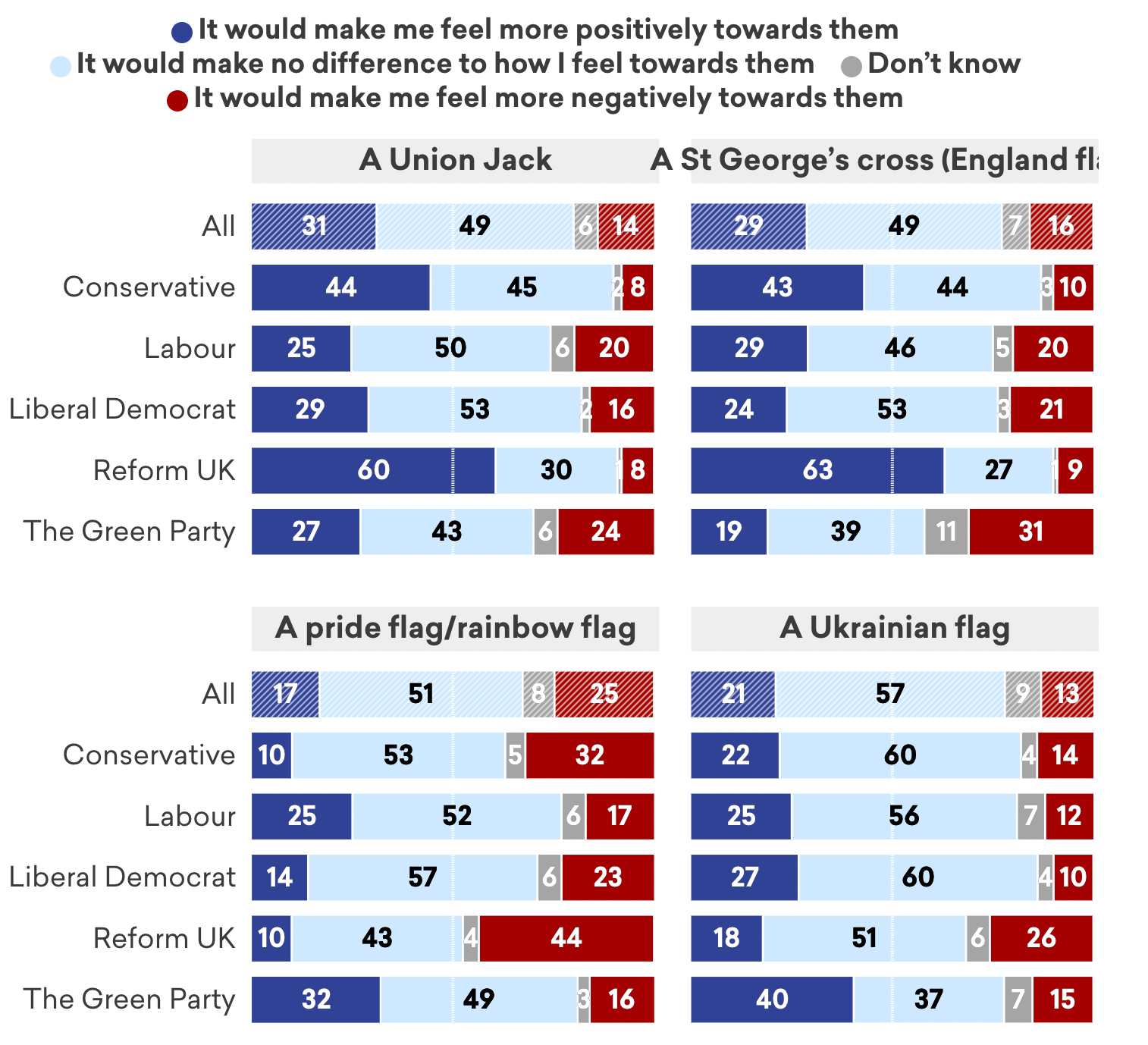 - Most Britons across the political spectrum say they are unlikely to think better or worse of neighbours if they see them flying a flag.