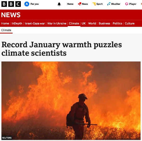 The story did catch our attention though here at Absurd Intelligence, namely for the way the mainstream headlines framed it: “Record January warmth puzzles scientists,” read the BBC. “Scientists are mystified,” reported the Guardian. What, wait... climate scientists are puzzled by this?